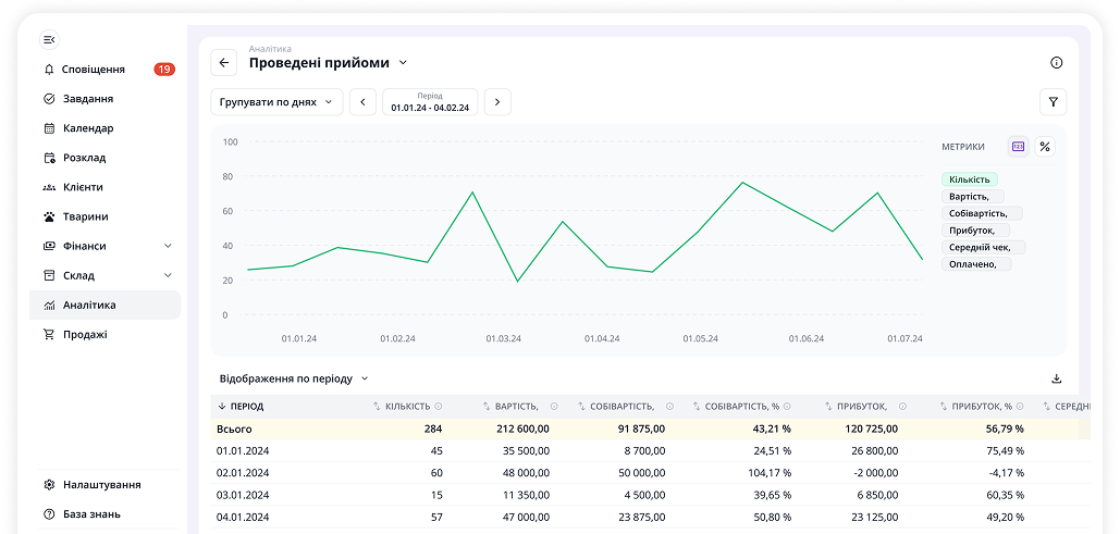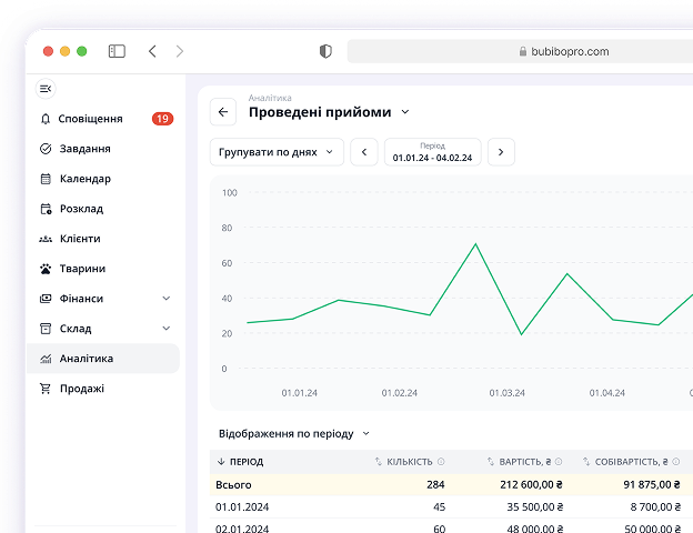та пет-магазинів. Автоматизуйте запис, ведіть облік товарів і дивіться аналітику в єдиному інтерфейсі, щоб залишалося більше часу на головне — турботу про носиків.